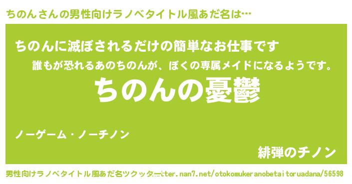 | 女子向けラノベタイトル風あだ名 | 『(仮)ちのんのやんごとなき事情』 |