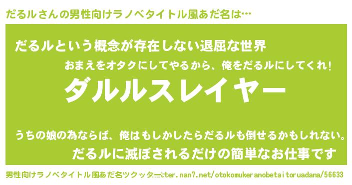| ヒーロー風カッコイイあだ名 | 『ネオダルル』『友情の使者だるル』 |