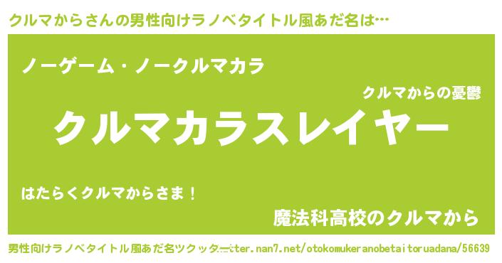 | 女子向けラノベタイトル風あだ名 | 『婚約破棄系悪役クルマからに転生したので、保身に走りました。』 |