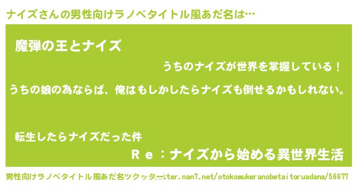 | 女子向けラノベタイトル風あだ名 | 『ナイズの婚約者』『闇のナイズ』 |