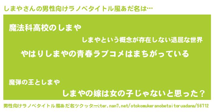 | 女子向けラノベタイトル風あだ名 | 『しまや伯爵の花嫁』『しまや様がみてる』 |