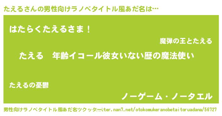 女子向けラノベタイトル風あだ名 | 『たえるの玉の輿計画!』 |
