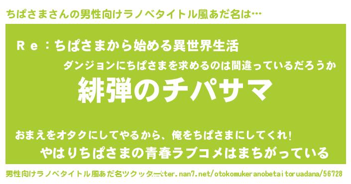 | ヒーロー風カッコイイあだ名 | 『超時空戦士チパサマ』『暗黒騎士チパ』 |