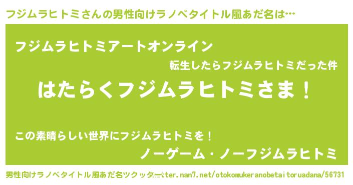 | 伝説のあだ名 | 『伝説の竜騎士フジムラヒトミ』 |