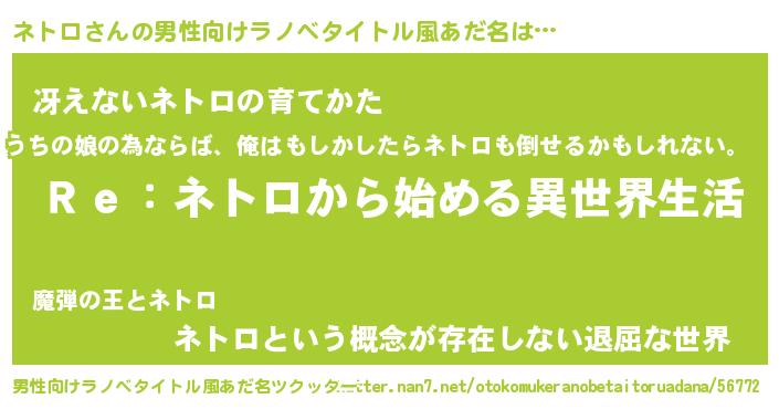| 意味不明あだ名 | 『自称ネトロ』『永久保存ネトロ』 |