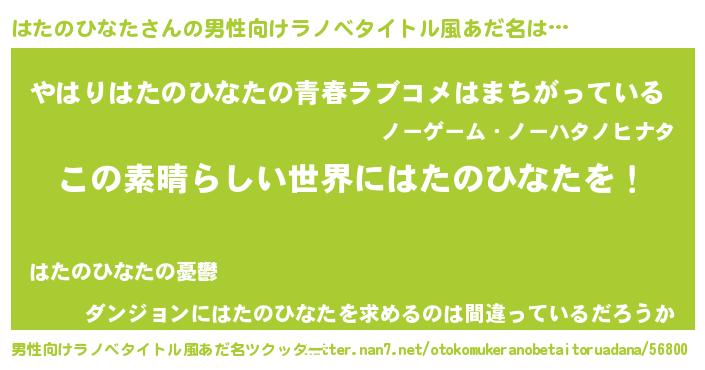 | 意味不明あだ名 | 『住所不定無職はたのひなた(71歳)』 |