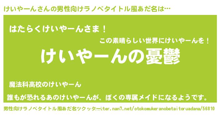 | 女子向けラノベタイトル風あだ名 | 『(仮)けいやーんのやんごとなき事情』 |