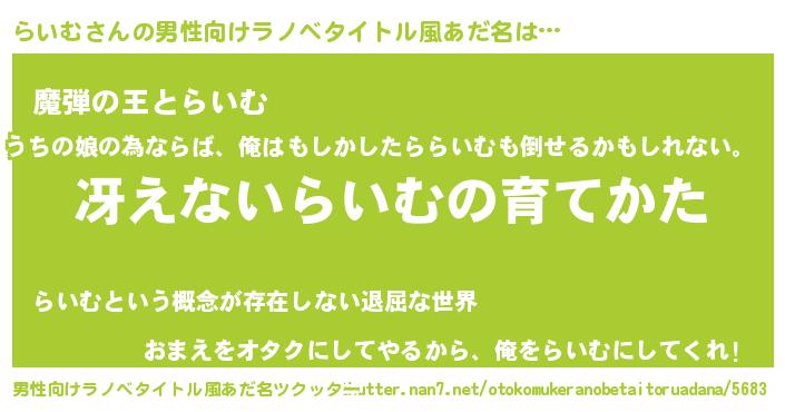 | ヘコむあだ名 | 『なまこ酢』『らいむ(苦笑)』 |