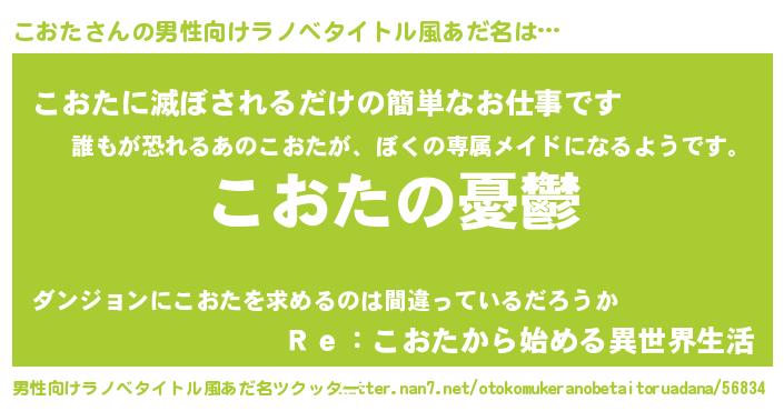 | 女子向けラノベタイトル風あだ名 | 『(仮)こおたのやんごとなき事情』 |