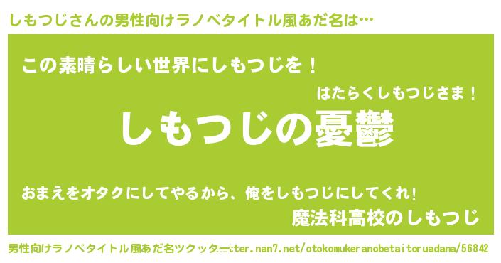 | 女子向けラノベタイトル風あだ名 | 『(仮)しもつじのやんごとなき事情』 |
