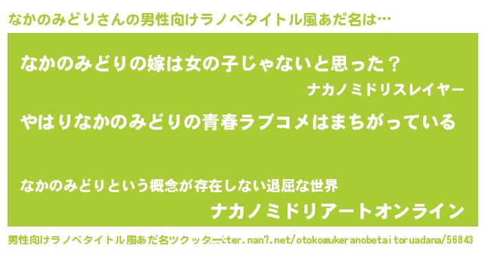 なかのみどりさんの男性向けラノベタイトル風あだ名をツクッター!