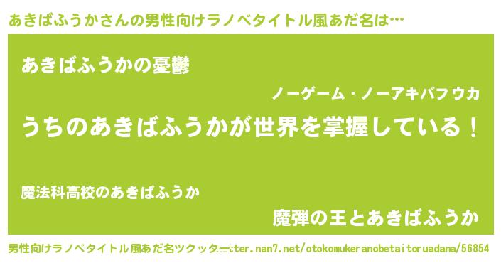 | 胡散臭い通販商品みたいなあだ名 | 『億万長者になれる霊験あらたかなお札…その名も「あきばふうか」』 |