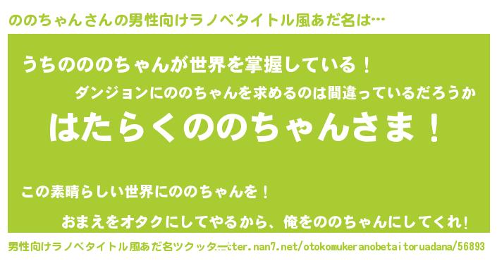 | ヘコむあだ名 | 『ののっぺ』『酢こんぶ』『ののにー』 |
