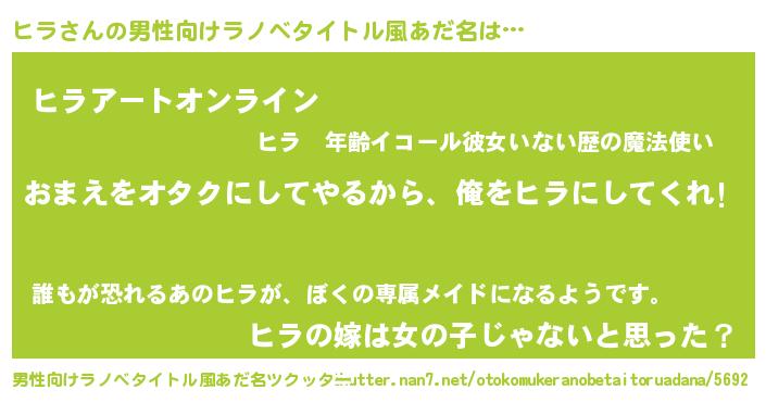 | 女子向けラノベタイトル風あだ名 | 『ヒラ恋絵巻』『ヒラ様がみてる』 |