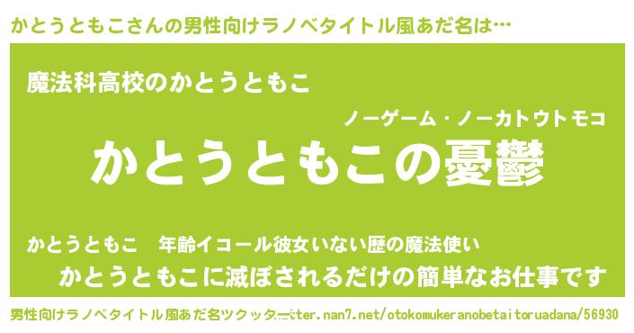 | 女子向けラノベタイトル風あだ名 | 『(仮)かとうともこのやんごとなき事情』 |