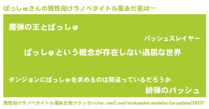 | 女子向けラノベタイトル風あだ名 | 『異世界で失敗しない100のぱっしゅ』 |