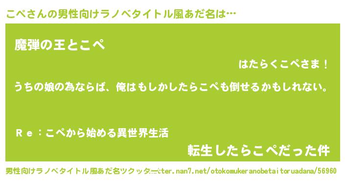 | 女子向けラノベタイトル風あだ名 | 『こぺの婚約者』『首の姫と首なしこぺ』 |