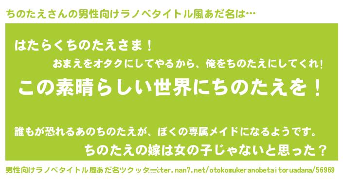 | ヘコむあだ名 | 『ちのぷりん』『ちのたえ(苦笑)』 |