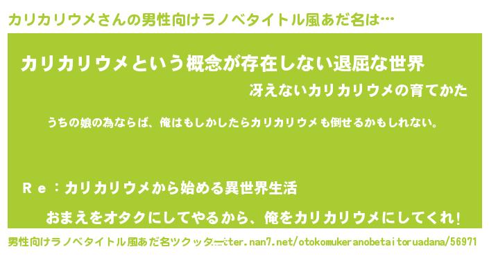 | ファンタジー風あだ名 | 『エターナルカリカリウメー』 |