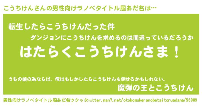 | ヒーロー風カッコイイあだ名 | 『仮面コウダー』『魔戒騎士コウ』 |