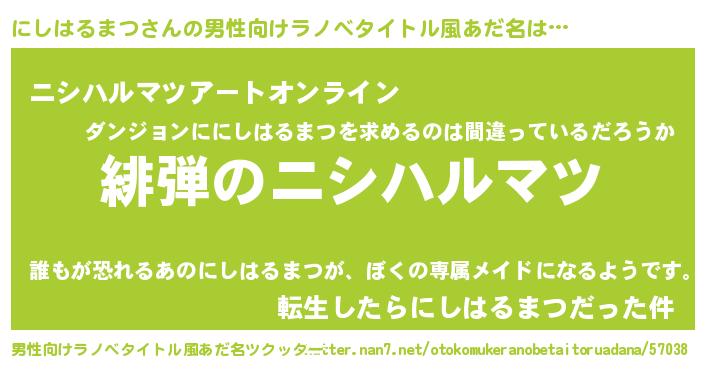 | ヒーロー風カッコイイあだ名 | 『スーパーニシハルマツ』『天弓騎士ニシ』 |