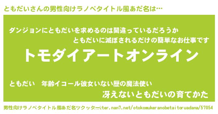 | 胡散臭い通販商品みたいなあだ名 | 『億万長者になれるブレスレット…その名も「ともだい」』 |