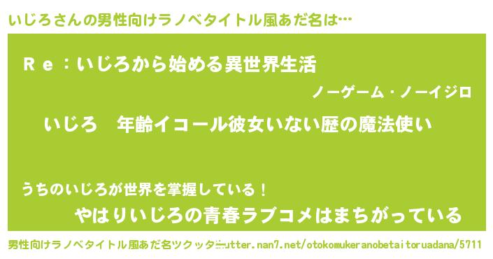 | 女子向けラノベタイトル風あだ名 | 『いじろの玉の輿計画!』 |