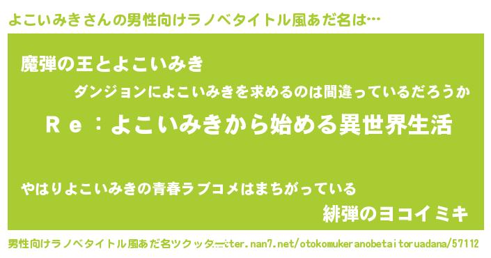 | 意味不明あだ名 | 『自称よこいみき』 |