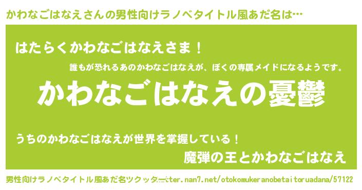 | 女子向けラノベタイトル風あだ名 | 『かわなごはなえ姫と円卓の騎士』 |
