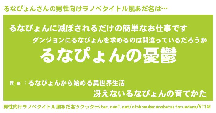 | 女子向けラノベタイトル風あだ名 | 『るなぴょん姫と円卓の騎士』 |
