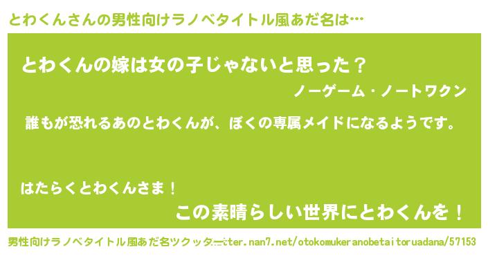 | 意味不明あだ名 | 『永久保存とわくん』『自称とわくん』 |
