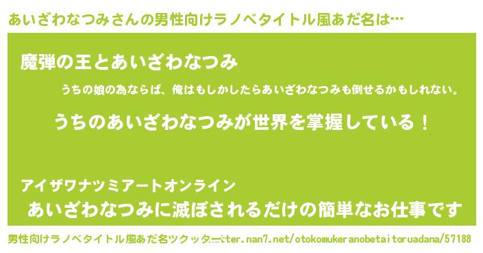 | 胡散臭い通販商品みたいなあだ名 | 『あなたにだけ特別に提供する限定10本のレアな日本酒…その名も「あいざわなつみ」』 |