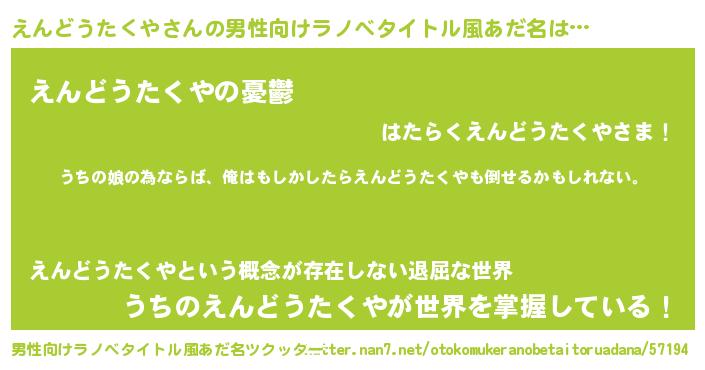 | 意味不明あだ名 | 『えんどうたくやフォーエバー』 |
