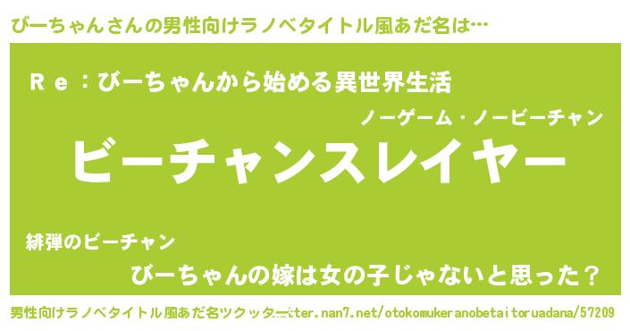 | ピコ太郎風あだ名 | 『ビー四郎』『ビビ太郎』『ピビ次郎』 |