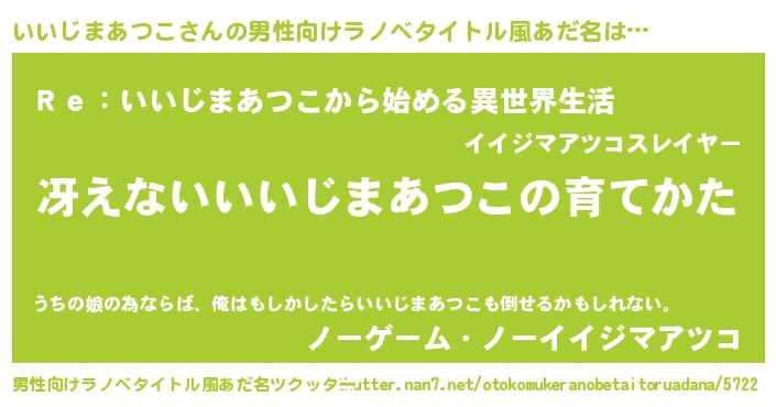 | 女子向けラノベタイトル風あだ名 | 『男装いいじまあつこの憂鬱な任務』 |