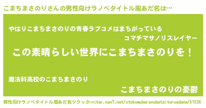 | 意味不明あだ名 | 『住所不定無職こまちまさのり(6歳)』 |