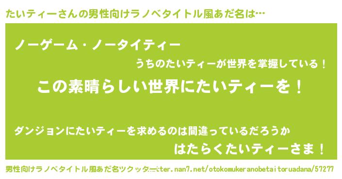 | 意味不明あだ名 | 『住所不定無職たいティー(9歳)』 |