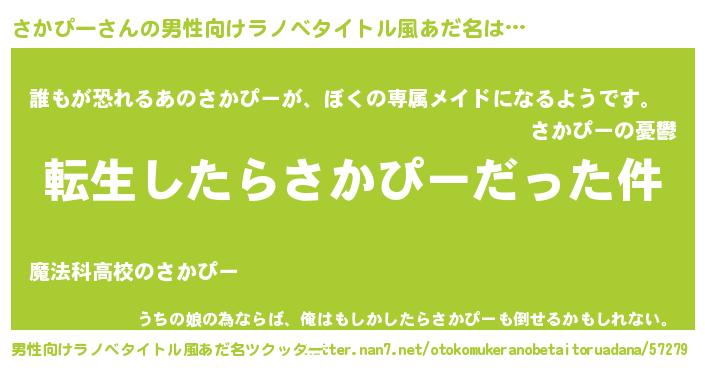| 胡散臭い通販商品みたいなあだ名 | 『来世でも幸せになれる健康食品…その名も「さかぴー」』 |