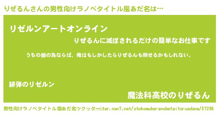 | ヒーロー風カッコイイあだ名 | 『ウルトラりぜるんマン』『ネオリゼルン』 |
