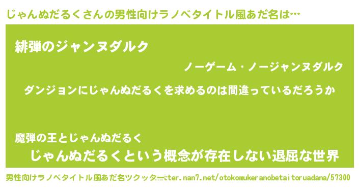 | 胡散臭い通販商品みたいなあだ名 | 『信頼と実績のサプリメント…その名も「じゃんぬだるく」』 |