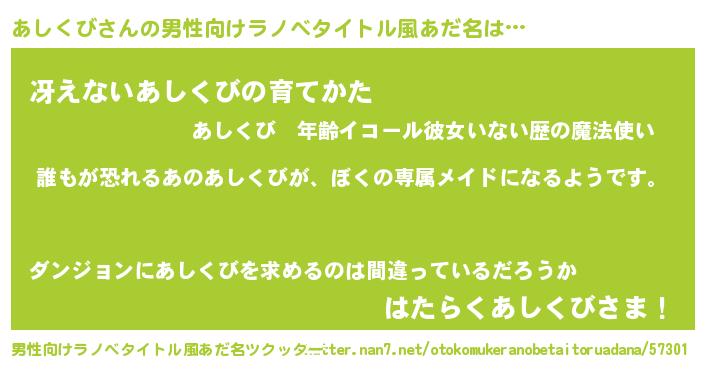 | 女子向けラノベタイトル風あだ名 | 『異世界でカフェあしくびを開店しました。』 |