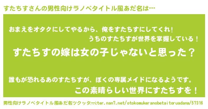 | 女子向けラノベタイトル風あだ名 | 『すたちす様がみてる』 |