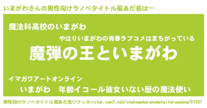 | ヒーロー風カッコイイあだ名 | 『仮面イマダー』『超時空戦士イマガワ』 |