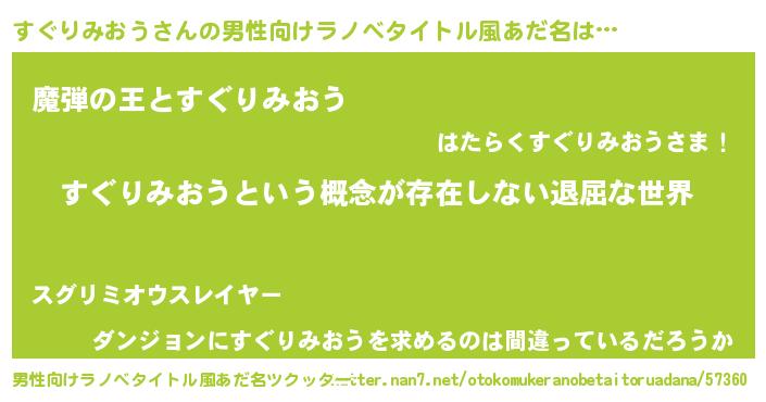 | 胡散臭い通販商品みたいなあだ名 | 『絶対に幸福をもたらす健康食品…その名も「すぐりみおう」』 |