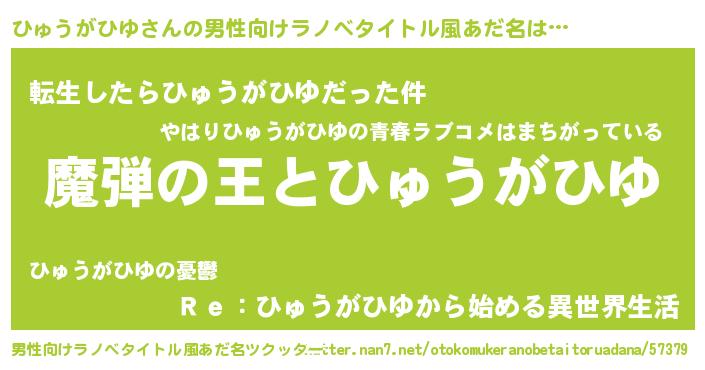 | 女子向けラノベタイトル風あだ名 | 『乙女ゲームの破滅フラグしかない悪役ひゅうがひゆに転生してしまった…』 |