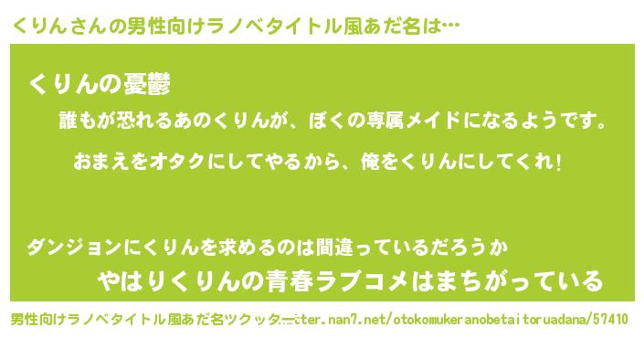 | 女子向けラノベタイトル風あだ名 | 『くりん夫妻のなれそめ』 |