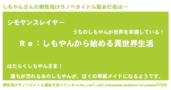 | 女子向けラノベタイトル風あだ名 | 『しもやんストレイドッグス』 |
