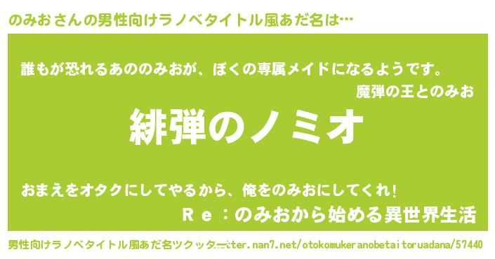 | ヒーロー風カッコイイあだ名 | 『ネオノミオ』『サイバー戦士ノミオ』 |