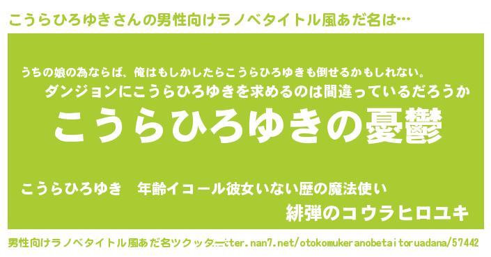 | 胡散臭い通販商品みたいなあだ名 | 『必ず成功する霊験あらたかなお札…その名も「こうらひろゆき」』 |