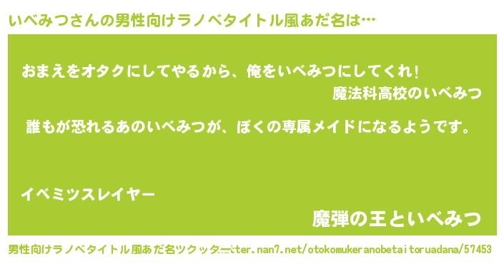 | ヒーロー風カッコイイあだ名 | 『ネオイベミツ』『正義の使者いべみつ』 |